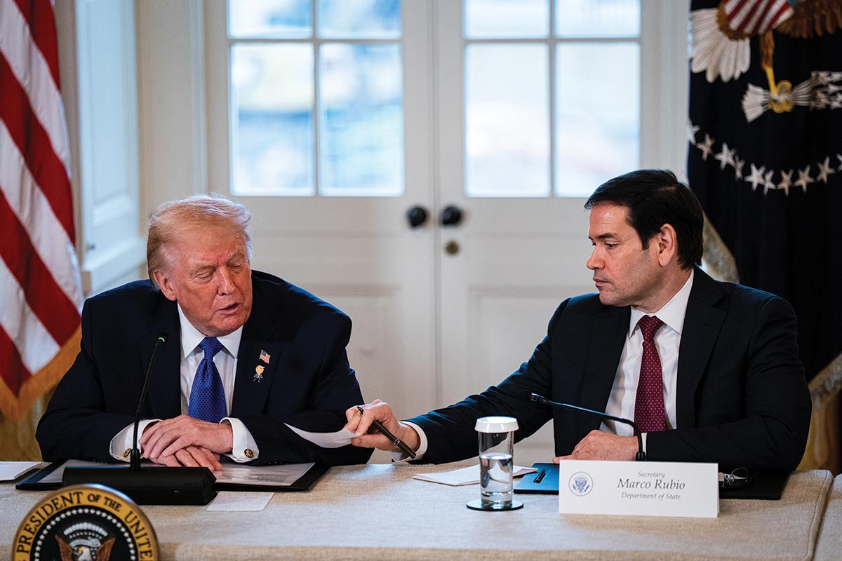 Rubio bridged this distance gradually—and then rather suddenly. He spent Trump’s first term as a dependable vote in the Senate for the administration’s agenda but was by no means one of its most visible champions. An unmistakable sign of Rubio’s shift was his 2023 manifesto, “My Plan for American Renewal,” a trimming of his neoconservative sails in a more populist-nationalist direction, published in one of that faction’s key journals, the Pat Buchanan–founded American Conservative. He was also one of the Senate’s most vocal China hawks, often on the basis of human-rights concerns, during Trump’s first term and then the Biden presidency, but he has largely backed away from that in the past year, in keeping with Trump’s more conciliatory approach.