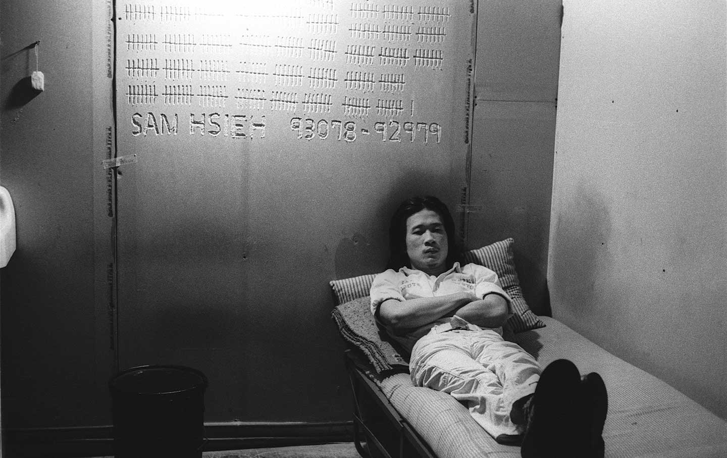 Hsieh grew up in a small town in southern Taiwan as one of 15 children born to a father who had five successive wives. The family’s members all lived together and the household was strict, but Hsieh’s mother indulged him. Taiwan itself was fairly conservative too, but Hsieh was able to grow out his hair and listen to rock music; he studied painting and, in 1967, dropped out of high school. After he completed three years of mandatory military service, his paintings were exhibited at the gallery of the American News Bureau in Taiwan. But Hsieh was already becoming more interested in the possibilities of art outside the confines of static images. In 1973, he recorded himself jumping out of a second-story window onto a concrete floor; he broke both his ankles and called it Jump Piece. He later performed a piece in which he ate fried rice, and then fruit salad, until he threw up.